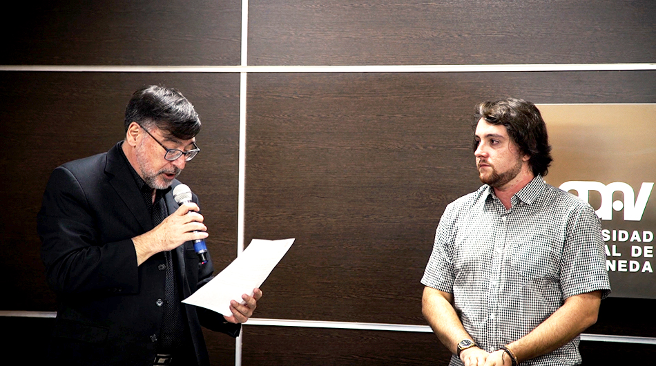 La UNDAV entregó a Caio Canarin Mroninski, de la Universidade Do Extremo Sul Catarinense, de Brasil, el primer título de Licenciado en Diseño Industrial por Doble Titulación UNDAV-UNESC.